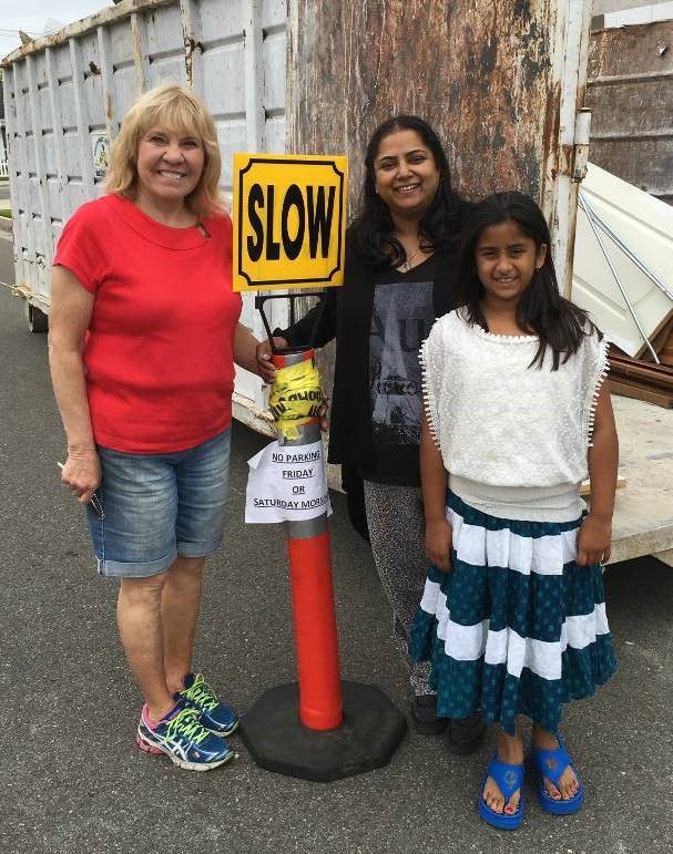 Linda, Reena and Gauri greet people at the Strasbourg dumpster. Published June 1, 2016 at 607 × 771 in Linda, Reena and Gauri greet people at the Strasbourg dumpster.